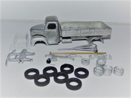 A metal kit in 1/50th scale of the for Thames ET6 with long wheelbase and dropside body, now fitted with metal cab.