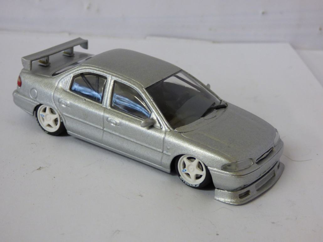 Minichamps 1994 Ford Mondeo Customised saloon metallic silver 1/43rd scale – a limited edition code 3 model refinished with front and rear wings & roll cage. Models comes in plain mailing box