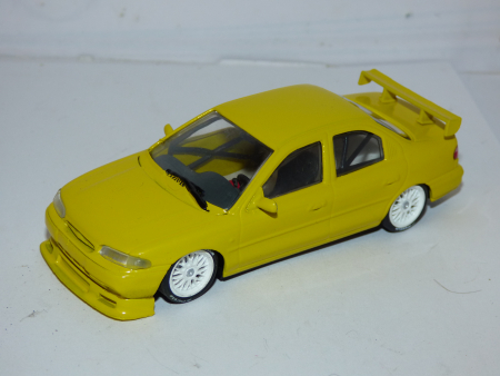 Minichamps 1994 Ford Mondeo Customised saloon Empire yellow 1/43rd scale – a limited edition code 3 model refinished with front and rear wings & roll cage. Models comes in plain mailing box